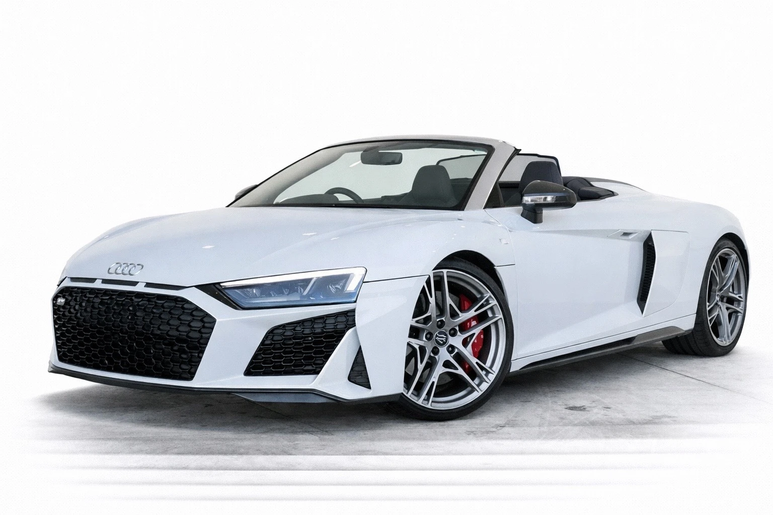 The convertible Spyder design allows you to enjoy open-air driving without compromising performance. Its aggressive aerodynamic styling, signature Audi Singleframe grille, sharp LED headlights, and sculpted body lines ensure the R8 Spyder commands attention wherever it goes.